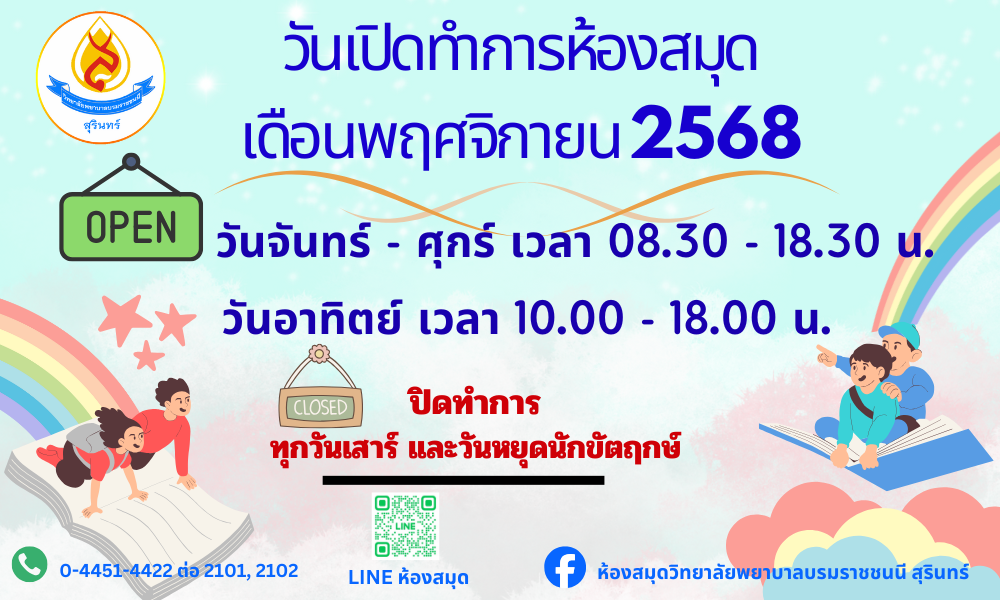 ยินดีต้อนรับสู่ ห้องสมุด วิทยาลัยพยาบาลบรมราชชนนี สุรินทร์