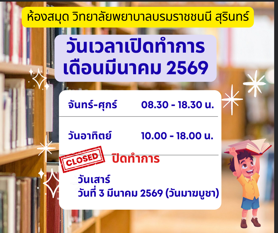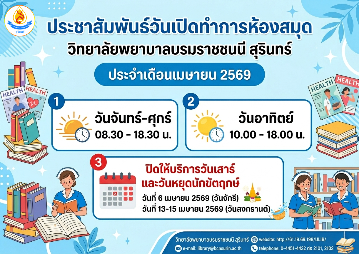 ยินดีต้อนรับสู่ ห้องสมุด วิทยาลัยพยาบาลบรมราชชนนี สุรินทร์